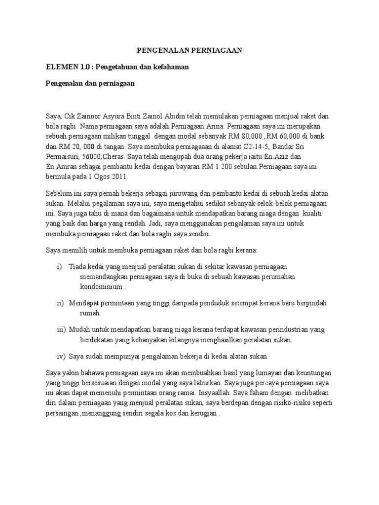 Contoh pengenalan perniagaan kerja kursus ting.4 2011.